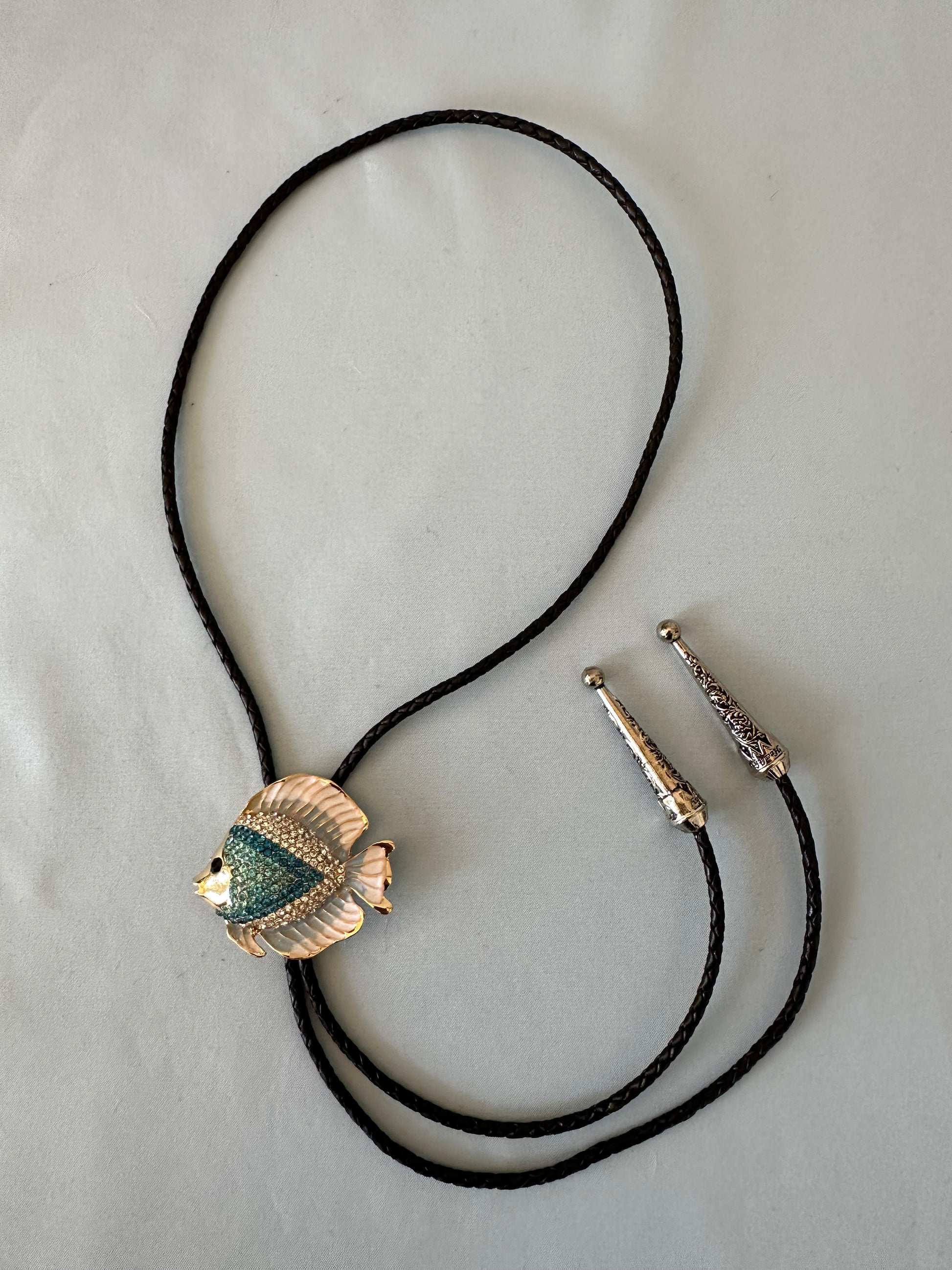 Featuring a curvaceous, hand-polished fish pendant—arched just right and ready to make a splash—this bolo tie is the ultimate bait for attention. Strung on soft black leather and tipped in sleek silver, it whispers, "I bite, but only if you ask nicely."</p>